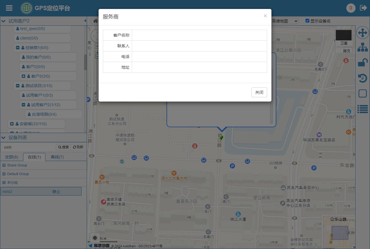 - 服务商:可在当前界面弹出登录用户上级服务商信息面板。