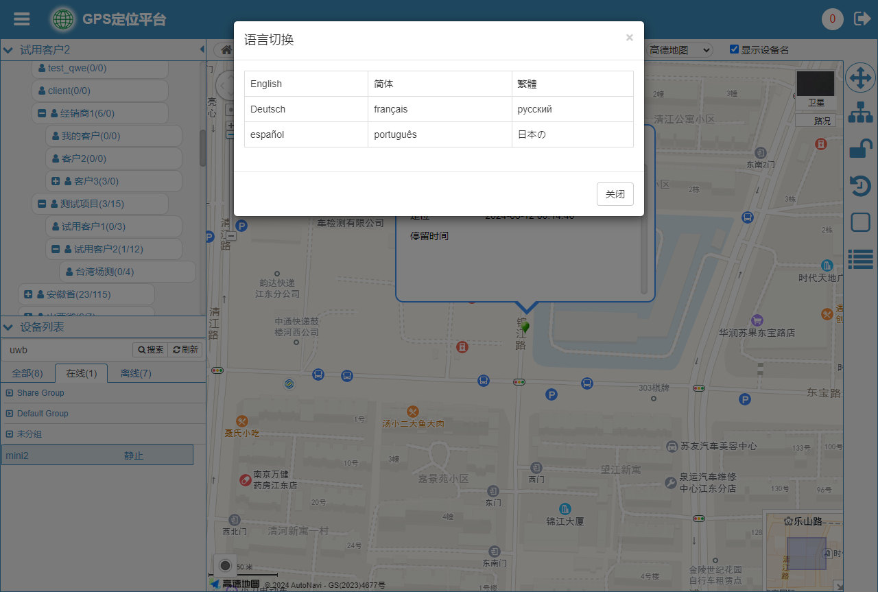 - 语言:可在当前界面弹出语言选择面板。