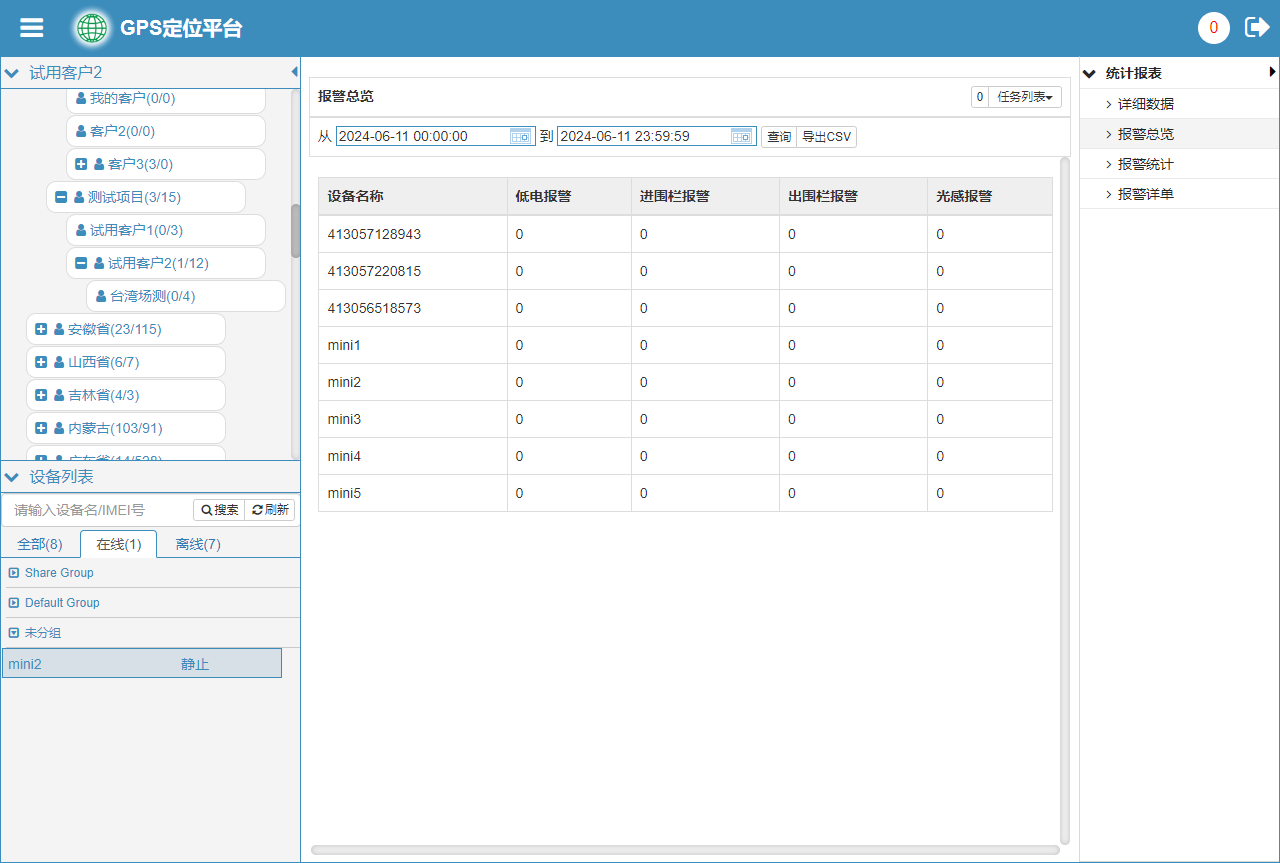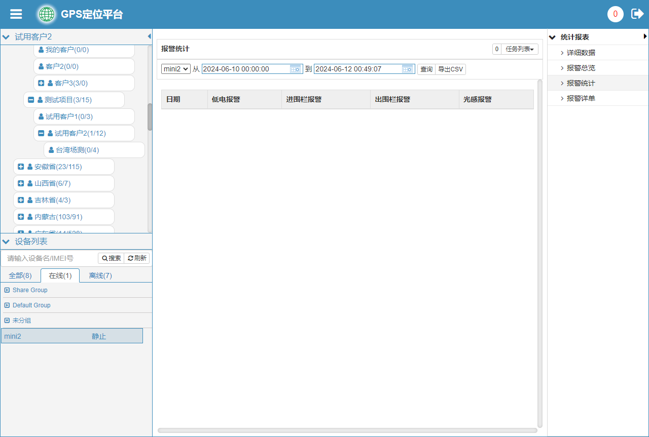 目录 搜索 展开 概述平台界面平台登录弹出层面板平台首页用户和设备树面板右侧工具栏底部信息栏弹出层面板可视化视图统计报表用户中心功能详解位置监控轨迹回放指令下发电子围栏设备管理用户管理离线地图 暂无相关搜索结果! 阅读次数:304 统计报表 详细数据报警总览报警统计报警详单详细数据报警总览报警统计报警详单作者:admin 创建时间:2024-06-12 00:45最后编辑:admin 更新时间:2024-06-12 13:22