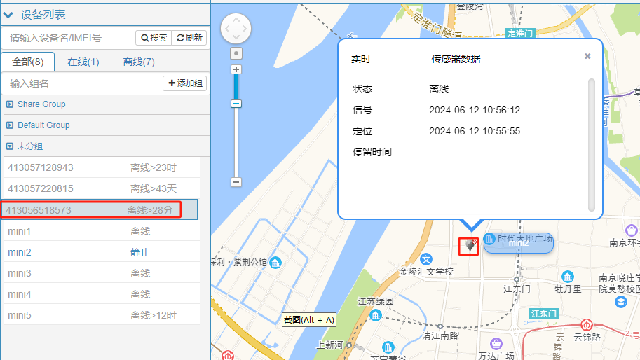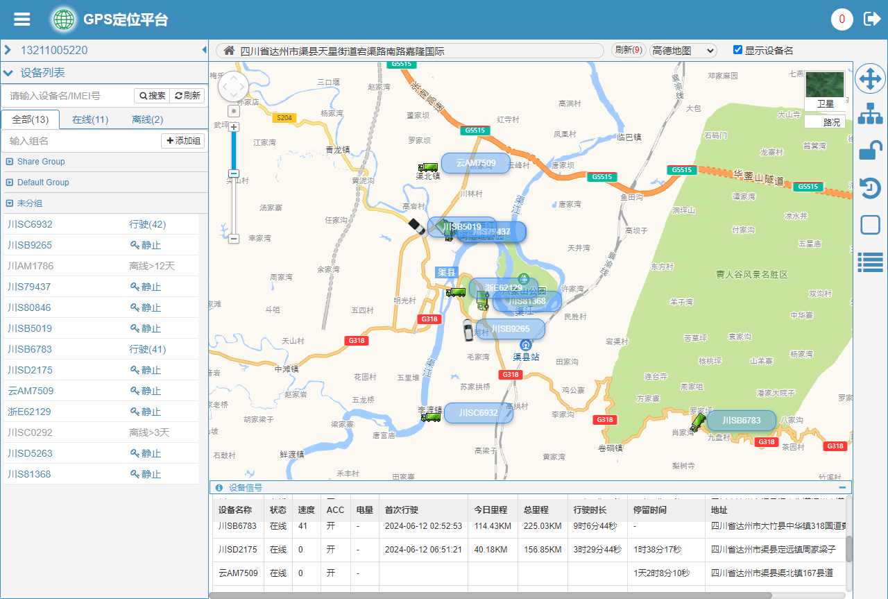 对于支持上报移动基站/wifi信息的设备,如果gps定位无效,则可通过点选设备树面板中的设备,自动触发基站查询,后端返回经纬度坐标后,监控界面会在地图上标注该设备的基站位置图标。