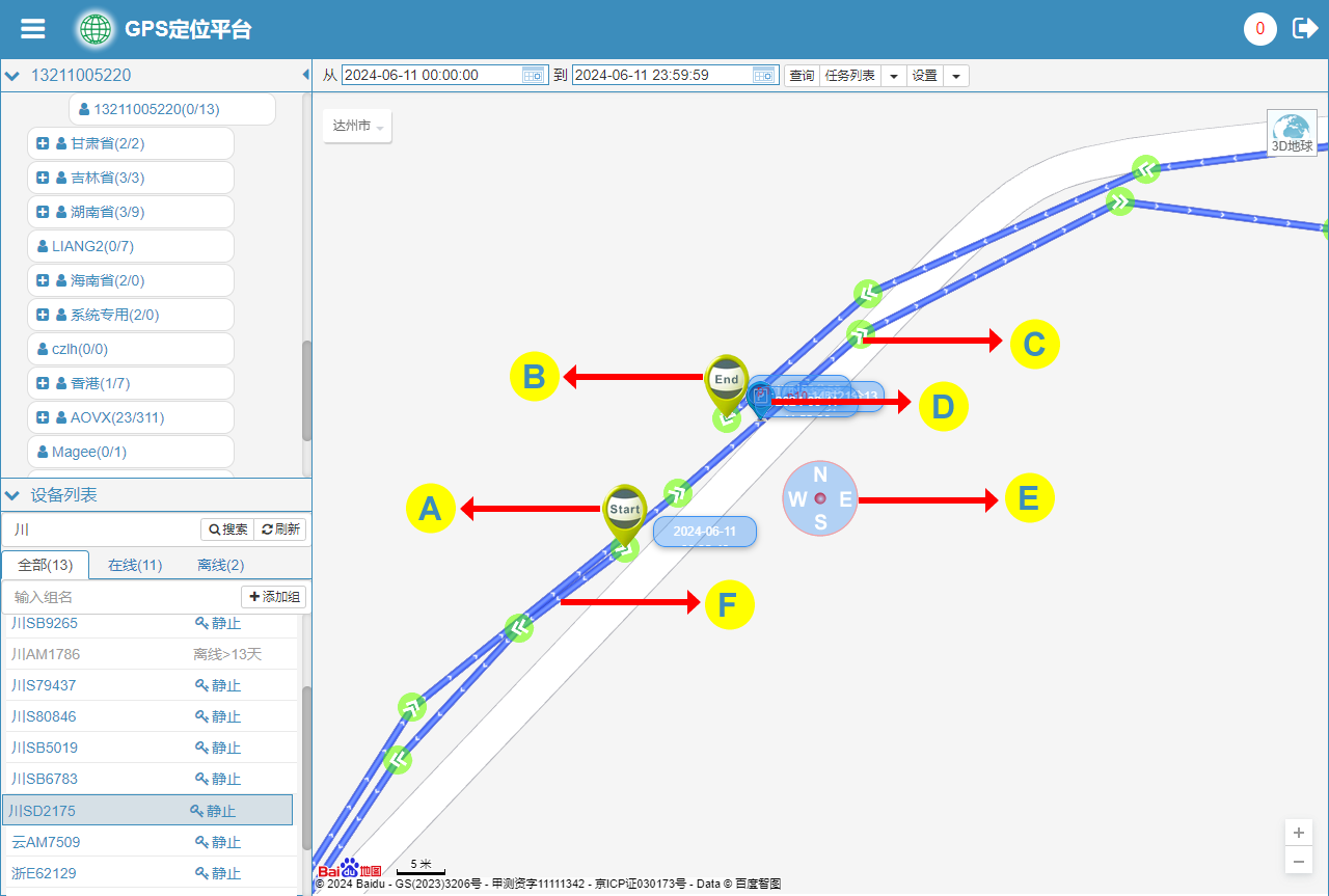 - (D) 停留点图标:终端停留位置对应的点图标。