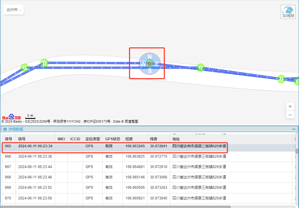 在设置面板中,将该选项打开,并在底部加载详细数据面板,点击轨迹点图标,详细数据面板滚动条会定位到该图标对应的记录,同样点击详细数据面板中的记录,对应的轨迹点图标会平移至中心点图标处。