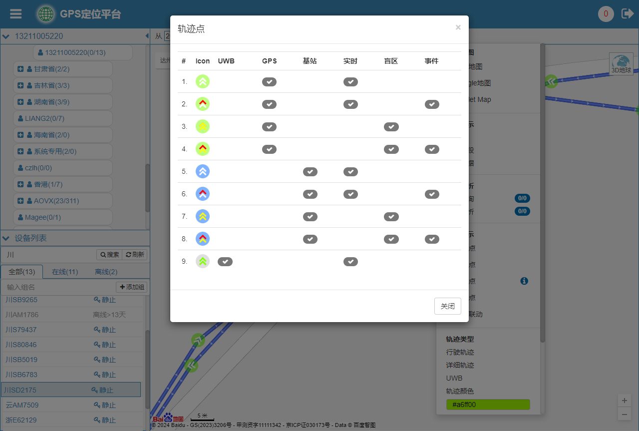 每个轨迹点记录,在地图上可对应一个轨迹点图标。