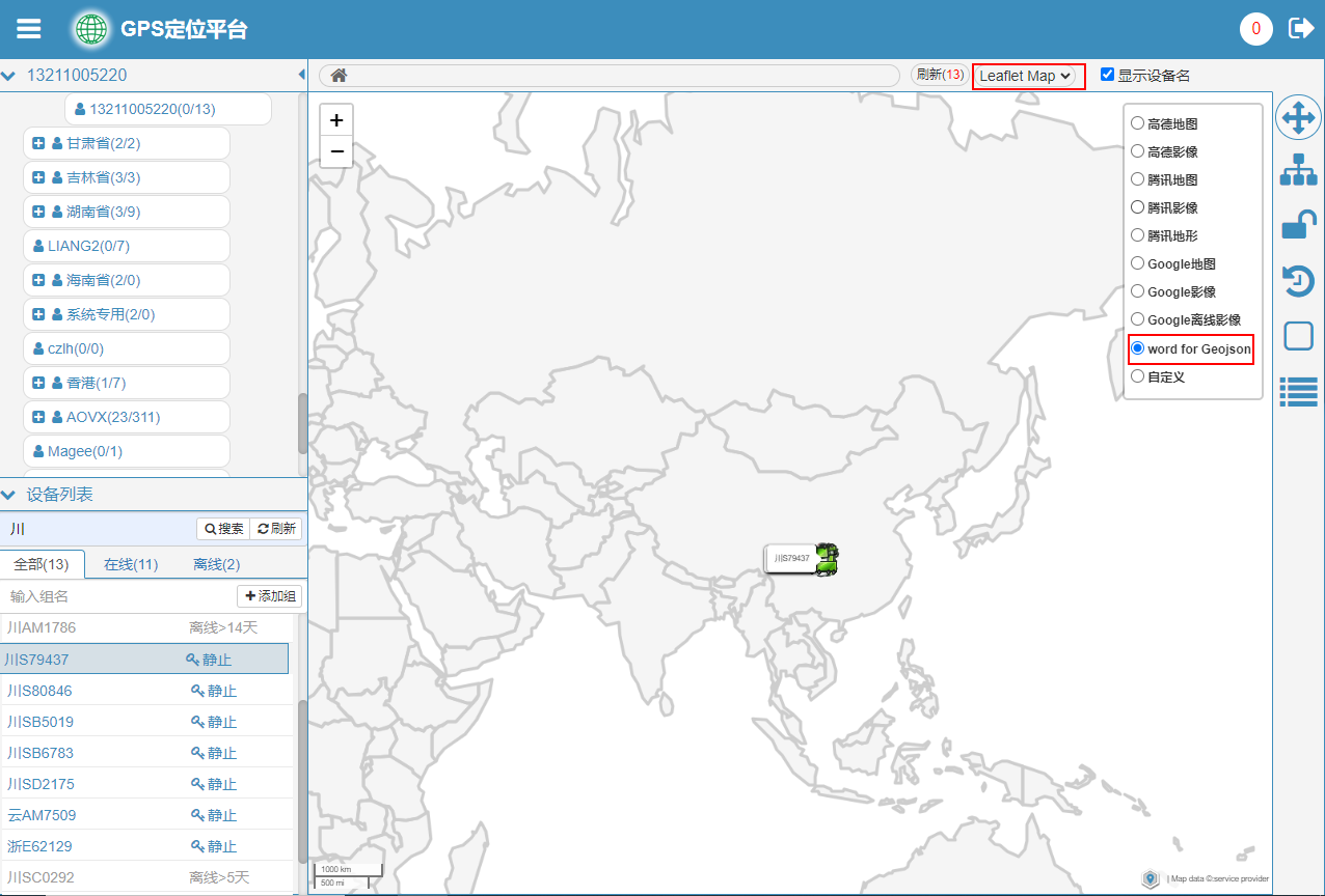 平台具备完善的自定义图层管理功能,目前支持瓦片、Geojson、图片。