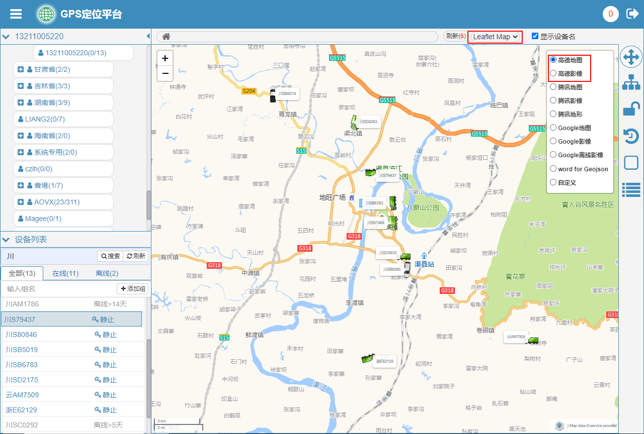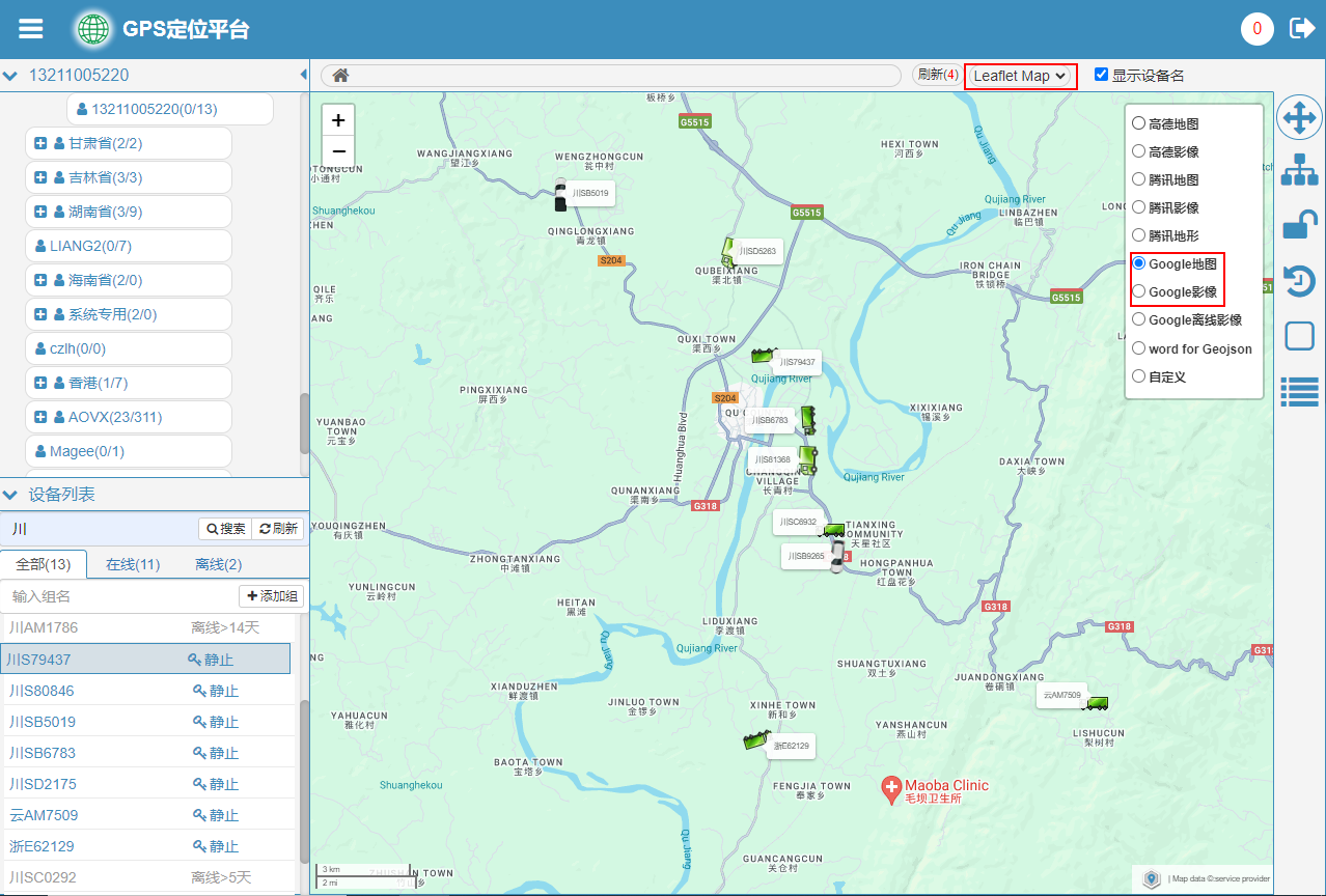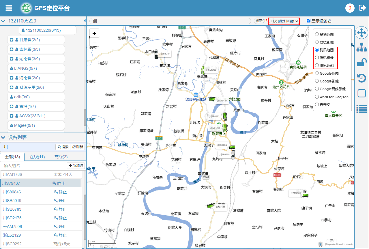 平台已集成了leaflet地图引擎,leaflet是业界比较流行的JS开源交互式地图包,它支持直接调用高德、腾讯、Google等主流在线地图数据,同时支持调用离线瓦片、Geojson等地图数据作为辅助图层来进行地理信息数据的可视化操作。